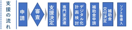 本事業では、市内事業者の経営業務の課題分析から業務のデジタル化の計画等を共に策定し、解決に向けて伴走型支援を行います。支援内容は以下のとおりです。