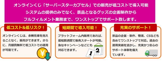 当社は、タレントや、レーベル、IPコンテンツホルダーなどのエンタメ業界において活動を行う方々や企業に対して、収益向上を図るための包括的な活動を支援するとともに、ユーザーに対してもこれまでにない体験価値を提供することができるプラットフォーム「サイバースター」を運営しております。その機能の1つに、オンライン上で抽選が行えるシステム「サイバースターカプセル」があります。このサイバースターカプセルは、サイバースター内での利用と、サイバースター外での当社のクライアントが運営する独自サイトでのご利用の2つのパターンで展開をしています。