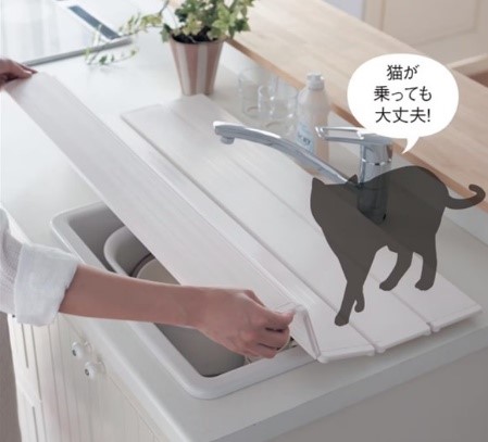 キッチンシンク用目隠しフタ 【ペットの侵入防止に】は、猫を飼っている人なら分かる、猫がキッチンのシンクに入って困る…とフタで解決する新発想アイテムです。