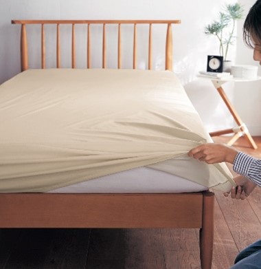 就寝時も猫と一緒に過ごす方には「綿混素材を使ったのびのび防水シーツ」がおすすめ。のびのび素材で側面までマットレスをカバーできるので、端っこの方でソソウされても、このシーツがマットレスを汚れから守ります。