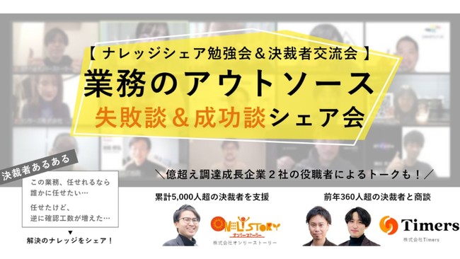 こうした声を受けて、設立から約10年間アウトソースサービスを提供し続けている株式会社Timersの大井川氏、佐々木氏をお招きし、アウトソースの失敗談と成功談をテーマにナレッジをシェアし合う勉強会を開催する事に至りました。