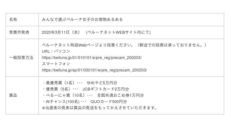 今回、皆様にご応募いただいた川柳(応募総数2,616句)の中からお客様の一般投票にて、「最優秀賞」「優秀賞」「べるーにゃ賞」が決定いたしました。受賞者の方には、宿泊券や商品券などの賞品を贈呈。また一般投票にて投票いただいた方にも、抽選で100名様に『QUOカード500円分』をプレゼントいたします。