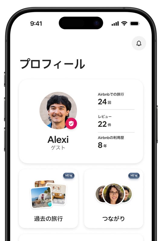 ●プロフィールAirbnbを利用した過去の旅行を共有したり、旅先で出会った人々を確認したりできるようになりました。また、Airbnbのプロフィールでは、本人確認手続きを完了している、世界2億人以上のゲストとホストをハイライトします。