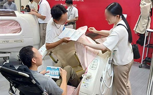 北陸初開催となる本展には、介護分野の主要企業約70社が出展。最新の介護用品やリハビリ機器、介護ロボットやシステムのほか、配食・給食サービスや厨房機器など様々な商品・サービスが一堂に集結。介護事業者が商品選定や商談を目的に来場する。