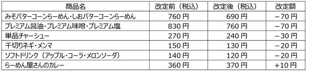 新グランドメニューでは、11品で20円~70円の値下げと一部商品の見直しを行い、その他商品価格は据え置きました。また、全てのらーめんで、ギョーザやチャーハンなどをお得に組み合わせ出来るよう変更し、選びやすいメニューにしました。