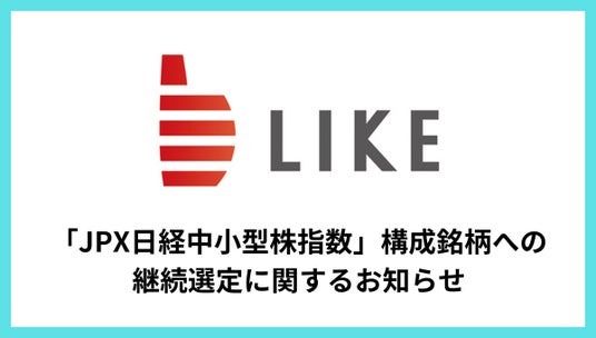 保育・人材・介護の事業を展開するライク株式会社(東京本社:東京都渋谷区、代表取締役会長兼社長 グループCEO:岡本 泰彦、以下 当社)は、株式会社JPX総研及び株式会社日本経済新聞社が共同で算出する「JPX日経中小型株指数」の2024年度(2024年8月30日~2025年8月28日)の構成銘柄として選定されましたので、お知らせいたします。