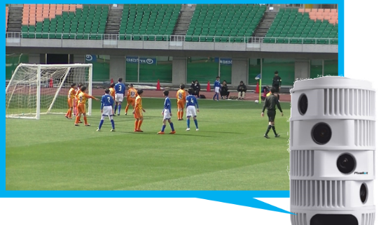 競技場内に設置した1台のAIカメラがボールや選手の動きを追尾し、自動で撮影を行います。