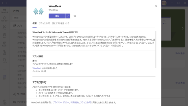 WowDeskのTeamsBotはカスタムアプリとして提供します