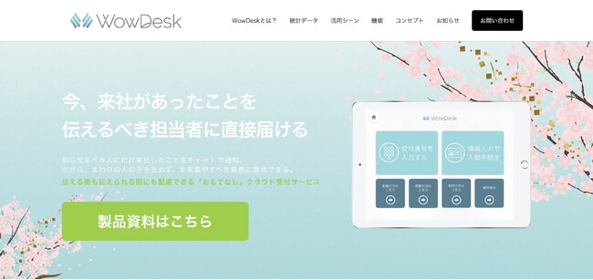 クラウド型受付システム「WowDesk(ワウデスク)」は、タブレットで受付対応が可能なサービスです。