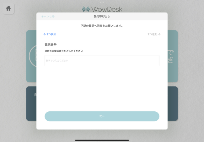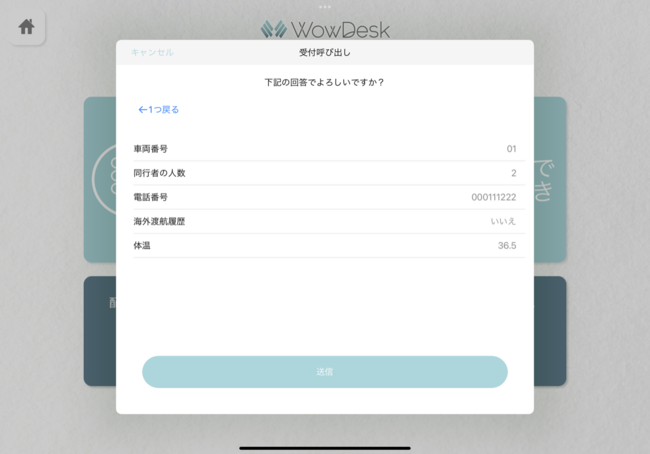 WowDeskで受付操作を完了すると、これまでもカスタマイズしたメッセージ付きの受付完了画面を表示することができましたが、今回のバージョンアップにより、来客が操作した受付ボタンによって異なるメッセージを表示することができるようになりました。
