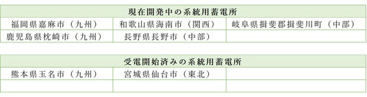 直近で受電開始を控えている系統用蓄電所につきましては、福岡県嘉麻市の系統用蓄電所が2026年6月、和歌山県海南市の系統用蓄電所が同年9月を見込んでいます。各蓄電所の進捗につきましては、確定次第、改めてお知らせいたします。