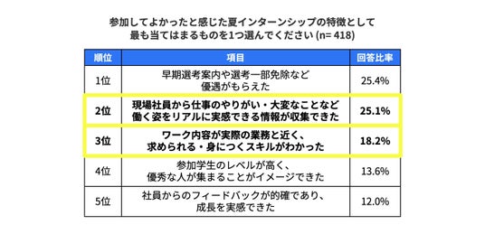 - 「リアルな働く姿を想起できる夏インターンシップ」に好感