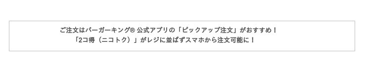 バーガーキング(R) にまだご来店いただいたことがない皆様も、バーガーキング(R) ファンの皆様も、冬の終わりを告げるお得な春のキャンペーン「2コ得(ニコトク)」をぜひご利用ください。
