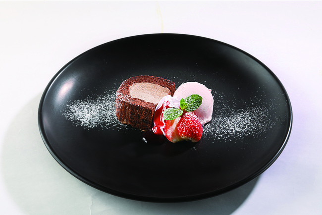 ●チョコロールケーキの苺アイス添え 590円(税込)