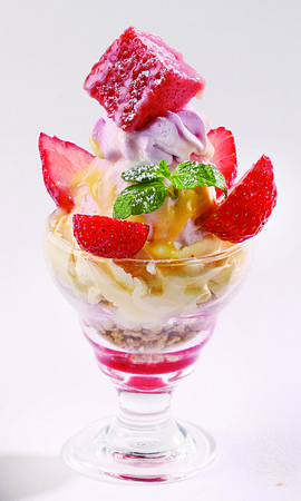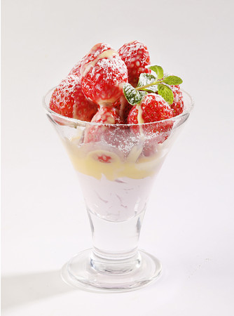 新鮮な苺をあま~い練乳とアングレーズソースで。2種類のソースが甘酸っぱい苺と相性抜群です。