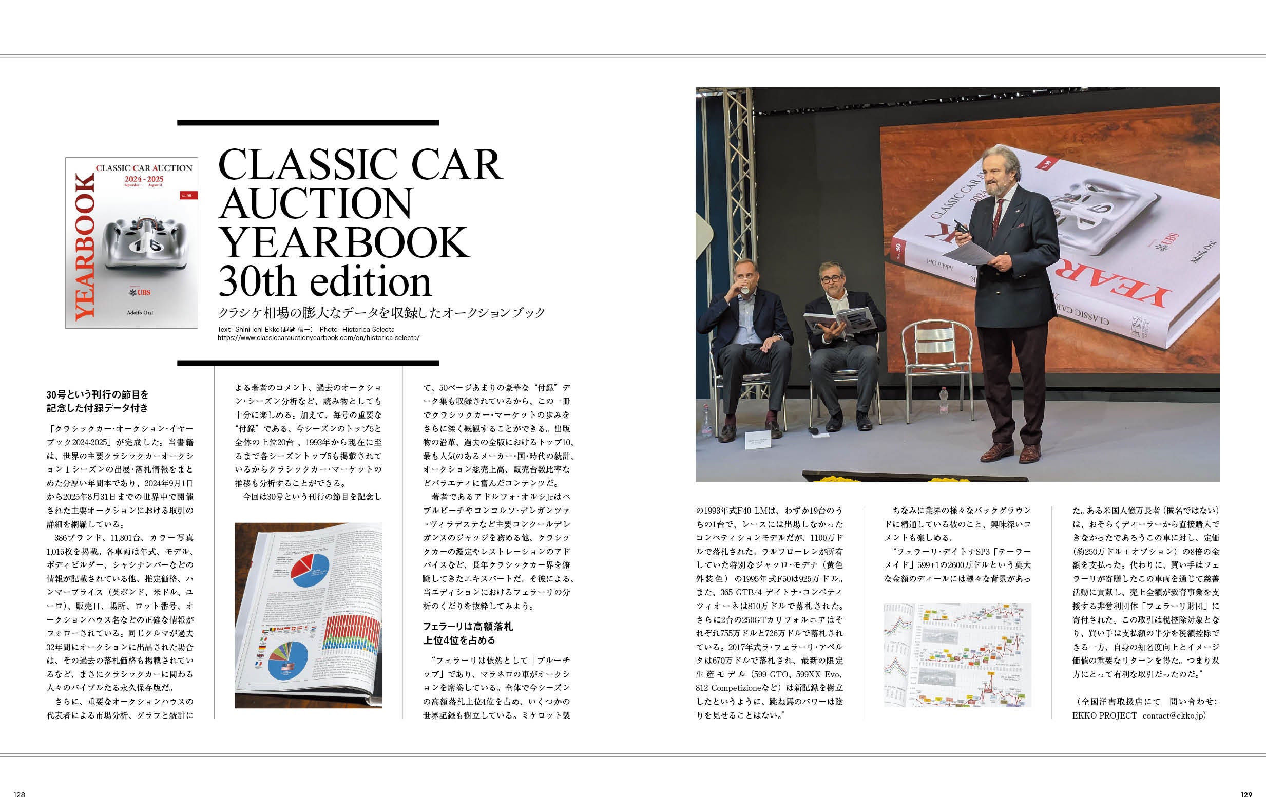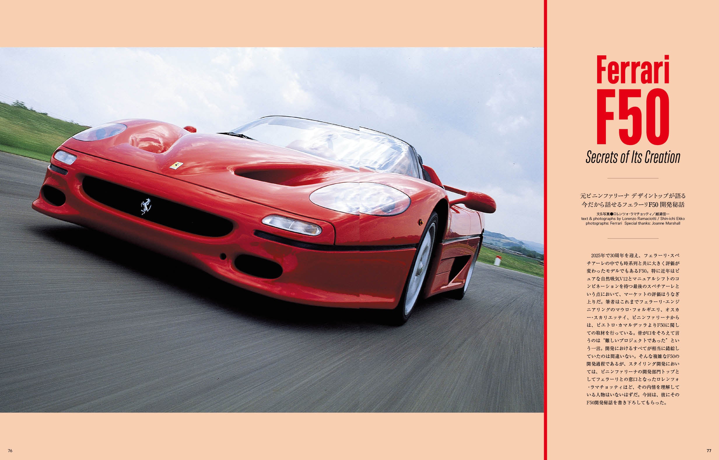 2025年に30周年を迎えた「F50」の開発秘話やトスカーナで開催された生誕30周年記念ツアーを掲載。クラシックフェラーリの移動博物館として注目され、イタリアの南チロル地方で開催された「カヴァルケード・クラシケ」や、モデナの三つ星シェフ「マッシモ・ボットゥーラ氏」の素晴らしいガレージを特別に取材させていただきました。