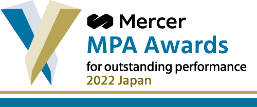 注:マーサーMPAアワードは過去の定量結果だけによる表彰であり、マーサーがマーサーの顧客に運用商品を推薦する場合に利用する定性評価とは無関係です。運用商品のリターン・データは運用報酬控除前であり、顧客が利用する際には運用報酬の違いを考慮する必要がありますので、表彰対象と同じ期間に表彰された運用商品を使っていても、表彰と同一の結果を得られるわけではありません。また、表彰に利用した評価基準が適切な方法であると保証するものではなく、表彰のために使ったデータや計算が正しいものであると保証するものでもありません。マーサーはこのアワードを受けた運用会社について何の保証をするものでも責任を持つわけではありません。過去の実績は将来のリターンを保証するものではありません。