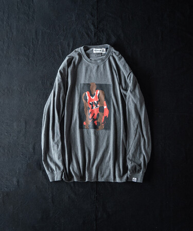 ぼんやりと思い出す、バスケの神様であり、ヒーローの姿。はっきりとした輪郭がないこともまた、記憶の儚さと 重なります。US企画Tシャツの「XL」、ワンサイズ。⽼若男女問わず、着用する人に合わせてシルエットに個性が現れます。また、洗うたびにゆっくりと⾊落ちしていくボディがひび割れたり⽑⽻立ったり、変化が待っています。育てる楽しさもグッドです。