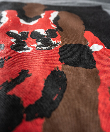指・手・刷りそれぞれのアナログ感が、染めボディに投影。