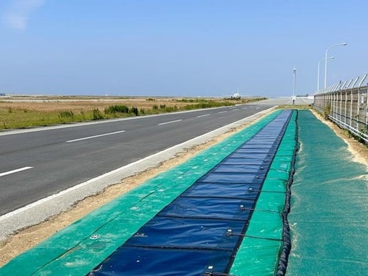 本実証は、空港制限区域内の緑地帯に地上設置するものであり、軽量・薄型で柔軟性を有するペロブスカイト太陽電池の特性を活かし、空港機能を維持・確保しながら将来的な再エネ導入の拡大を見据えた取組です。