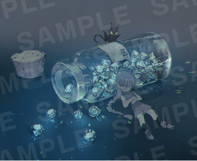 それぞれ特殊印刷を施し、ザラザラとした質感を表現した作品や、カードゲームのキラカードを模した作品、角度によって見え方が変化する作品等、様々な印刷加工によりデジタルイラストとは異なる魅力を引き出した1点ものに仕上げました。