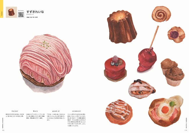 ゲーム・広告・挿絵・食べ物のジャンルに特化し、『GENSEKI』が開催するコンテストで優秀賞に選ばれた作家を含むイラストレーター57名の作品をフルカラーで掲載。
