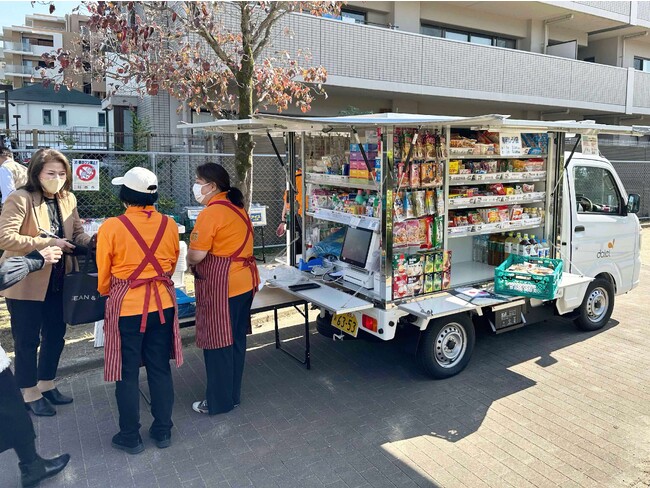 こうした中、ネットワークメンバーである株式会社ダイエーが11月6日(月)から市内21カ所で移動販売を開始する。初日は市内各所の福祉施設や地域の公園など5カ所で移動販売を開始した。