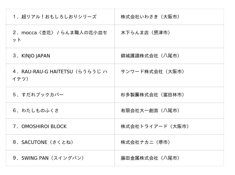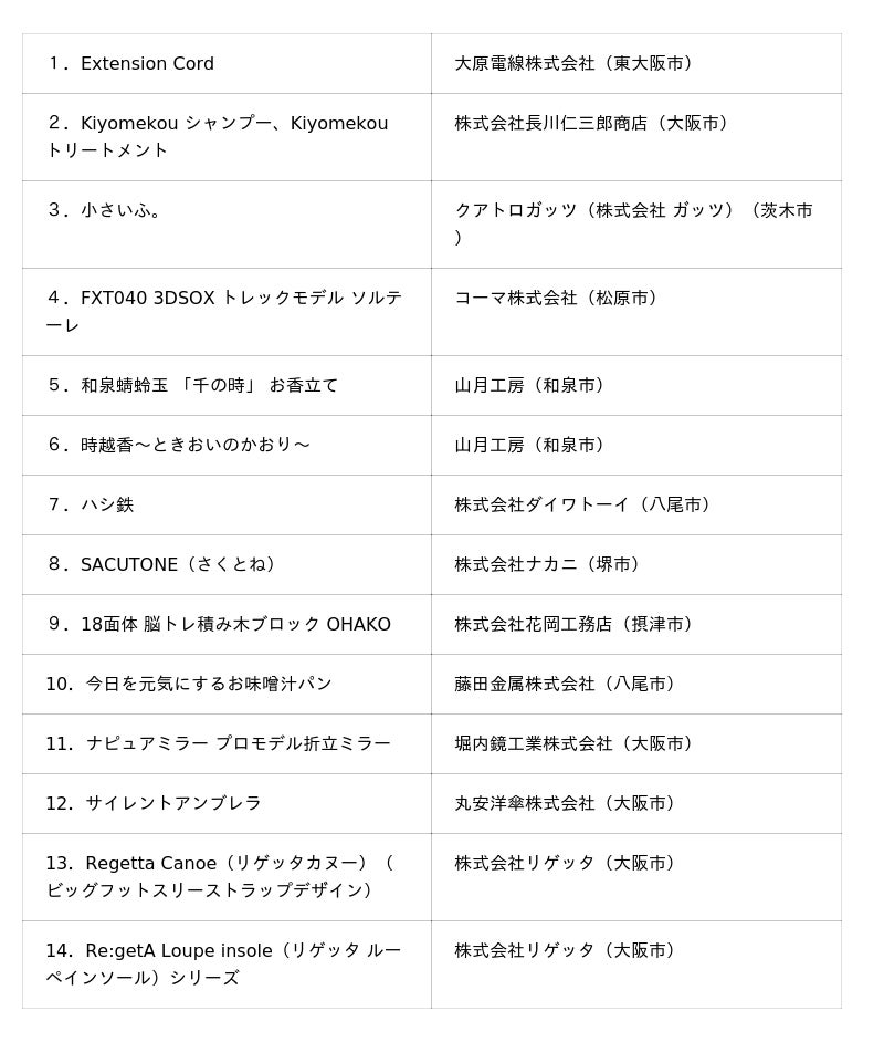大阪府知事が認定する「大阪製ブランド認定事業(※1)」は、