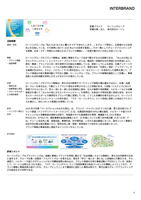 日本最大級のブランディング会社である株式会社インターブランドジャパン(東京都中央区、代表取締役会長 兼 社長 兼CEO:ゴンザロ・ブルーホ)は、2018年「ブランディング」の取り組みを評価する日本初のアワード「Japan Branding Awards」を創設し、その第7回となる2025年度の受賞ブランドを発表しました。