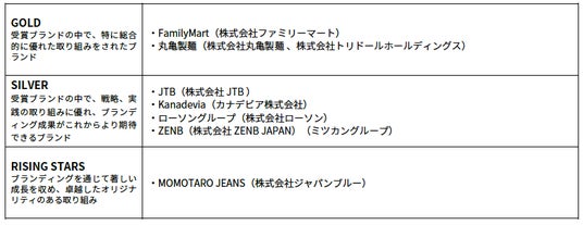 ・アワード最高賞の “GOLD” は、FamilyMart、丸亀製麺