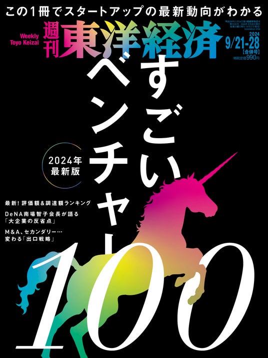 『週刊東洋経済』を発行する株式会社 東洋経済新報社(本社:東京都中央区、 代表取締役社長:田北浩章)は、2024年9月17日(火)に『週刊東洋経済』9/21・28合併号「すごいベンチャー100 2024年最新版」(特別定価990円)を発売いたします。おかげさまで本特集は多くのベンチャーの皆さまにご注目いただく恒例特集となりました。本日9月13日(金)15時に、東洋経済オンラインにて東洋経済編集部が独自に選んだベンチャー100社を発表しております。