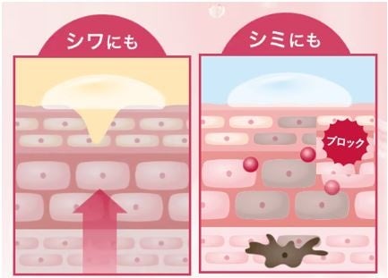 (*化粧水、乳液、美容液、クリームの役割がひとつになったもの*1 メラニンの生成を抑え、シミ・そばかすを防ぐ)