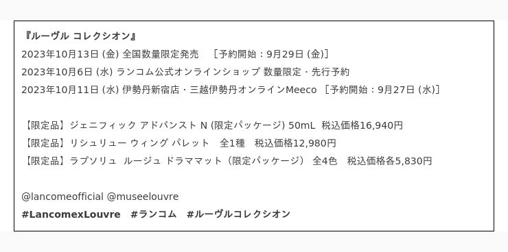 2023年ランコムのホリデー限定コレクシオン『ルーヴル コレクシオン』(全3種・6品)