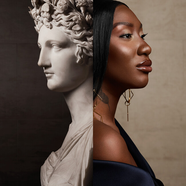 アンバサダーの一人ひとりが、彫像に向き合い、感銘を受けた作品を反映した「美」を表現しています。そこには、自立し、野生味に溢れる力強さ、そして引き寄せられるような魅力と輝きを放つ、類まれな才能が宿ります。