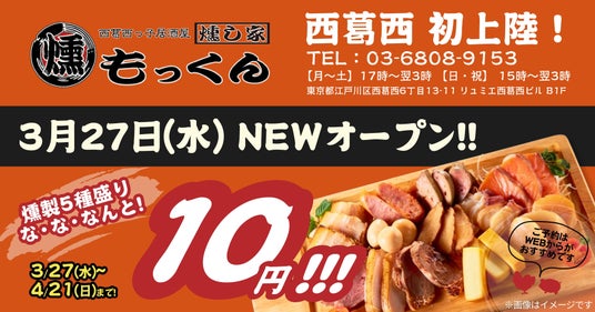 「"楽しい"でつながる世界をつくる」を経営理念とする飲食企業の株式会社ファイブグループ(本社:東京都武蔵野市 代表取締役社長:坂本憲史 以下ファイブグループ)は、2024年3月27日(水)に西葛西にて「西葛西っ子居酒屋 燻し家もっくん」をオープンします。
