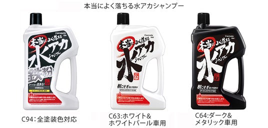 「本当によく落ちる」シリーズは、2011年に発売された水アカシャンプー(上写真:C63.C64)が原点です。その後、2014年に鉄粉除去の機能を加えた全塗装色対応のシャンプー(上写真:C94)が追加され、2020年頃からコーティング前におすすめのシャンプーとして動画SNSで拡散されました。現在シリーズ累計出荷個数は45万個を超え、ロングセラー製品となっています。「本当によく落ちる」のフレーズ通り、”かつてない汚れ落ち・仕上がり”をコンセプトとし、ラインアップを拡大します。