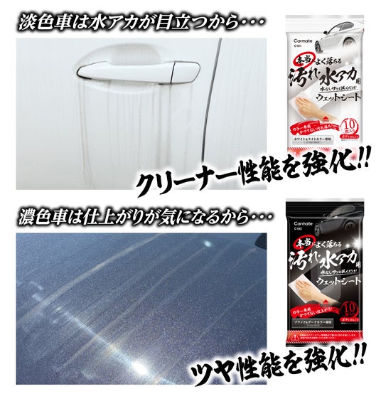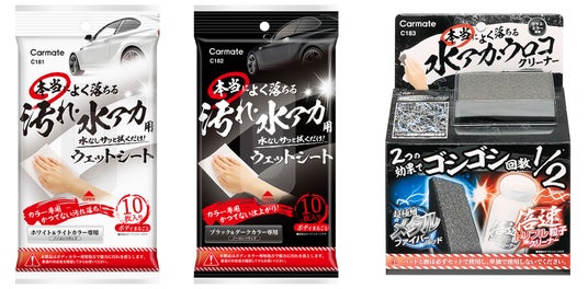 株式会社カーメイト(本社:東京都豊島区)は、淡色・濃色それぞれのボディカラー用に開発したウェットシートクリーナー2種と、こする回数を1/2にしたガラス用水アカクリーナー1種を4月8日(月)に発売しました。ロングセラーの水アカシャンプー「本当によく落ちる」シリーズの追加ラインアップとして、“かつてない汚れ落ち・仕上がり”を新コンセプトに展開します。製品名や詳細は以下をご覧ください。