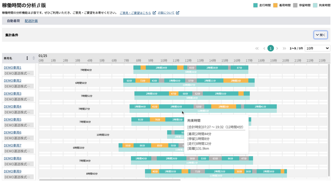 本機能は、β版としてリリースいたしました。利用者の皆様に活用いただきながら、フィードバックをもとに改善してまいります。より分かりやすい画面に改善し、ドライバーの長時間労働改善に貢献していきます。