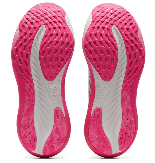「GEL-NIMBUS」シリーズは、1999年から展開している、当社を代表するクッション性を重視した高機能モデルのひとつです。アッパー(甲被)に足当たりの良いエンジニアードニットを採用しています。部位によって密度を変えることで、必要箇所を補強しつつ、通気性にも優れた仕様になっています。靴底は、独自開発のラバー素材2種類を配した「HYBRID ASICSGRIP(ハイブリッドアシックスグリップ)」を採用し、グリップ力と耐久性を両立させています。ミッドソール(甲被と靴底の間の中間クッション材)は、全面に環境に配慮したクッションフォーム材「FF BLAST PLUS ECO(エフエフブラストプラスエコ)」を採用し、軽量でやわらかなクッション性を実現しています。クッションフォーム材の約24%に再生可能なサトウキビ由来の素材を使用しています。また、かかと部に足にかかる負担を軽減する衝撃緩衝機能「PureGEL(ピュアゲル)」を内蔵しています。これからランニングをはじめる方、フルマラソン完走を目指す方におすすめです。