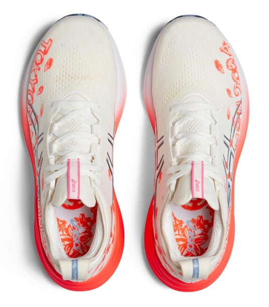 今回発売する商品は、「アシックス」ブランドを代表するシューズをベースに、「東京マラソン2024」のテーマカラーであるピンクを基調としています。アッパー(甲被)全体や中敷には日本の春を象徴する「桜」をモチーフとしたデザインを散りばめています。