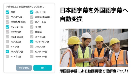 株式会社L is B(エルイズビー 本社:東京都千代田区、代表取締役社長CEO:横井 太輔、以下L is B)は、現場のナレッジやノウハウを動画で共有できる企業向けサービス「ナレッジ動画」において、有償の「外国語オプション(外国語字幕生成・外国語音声翻訳)」をリリースしたことをお知らせいたします。これにより、外国人スタッフが母国語字幕付きで動画視聴することが可能となり、工場や建設現場の新規入場者教育などに活用できます。