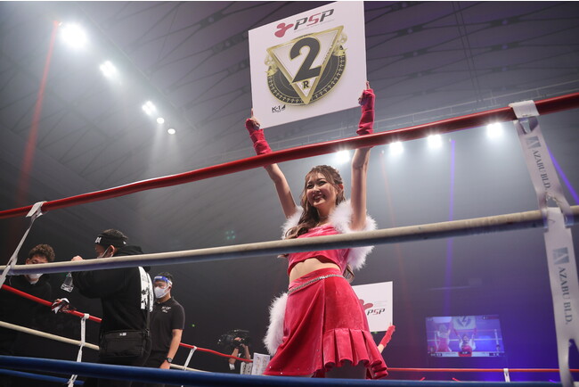 各ラウンド間、お二人はリング上にて長い足がネットでも話題になる程モデルさながらなウォーキングを披露し、観客の皆様に向けてラウンドボードを掲げて大会を盛り上げていただきました。試合後、ゆうちゃみさん・ゆいちゃみさん、そして2度のダウンを奪い玖村修平を降し勝利した斗麗選手の3名の取材をバックステージで行いました。