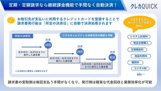 ■ 「クレカQUICK」に継続課金機能を搭載し、サブスクなど定期的な請求業務の効率化を支援