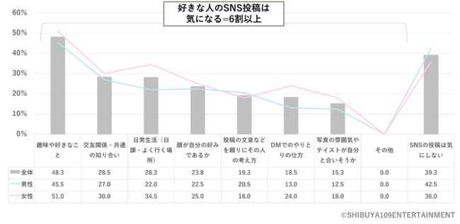 SNSでチェックする項目1位は「趣味・好きなこと」(48.3%) となり、話しかけるきっかけなどを把握するツールとして使われていることがわかります。 ナチュラルな投稿から距離感を縮め、「好きバレ」しない範囲でInstagramを活用しています。