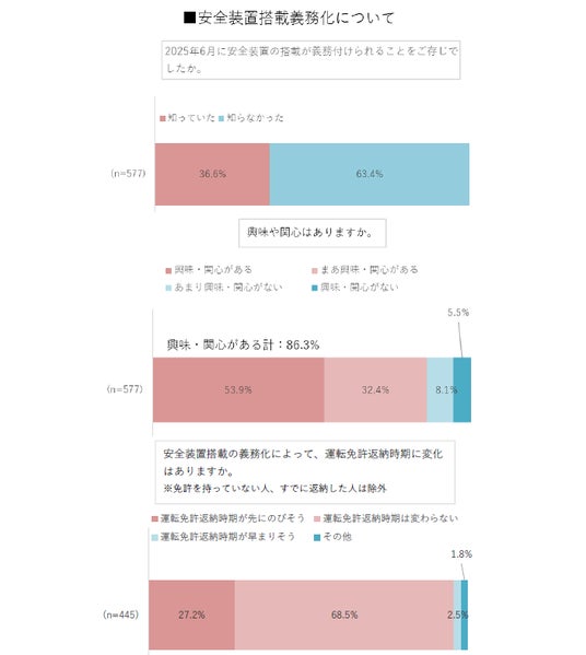■「2025年6月からの安全装置搭載の義務化」認知率は4割弱に留まったが、制度への興味・