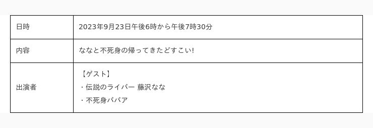 2023年9月23日(土)ライブ配信番組(全5部)