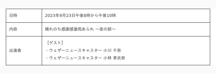 ※出演者・番組内容は、都合により急遽変更になる可能性がございます。