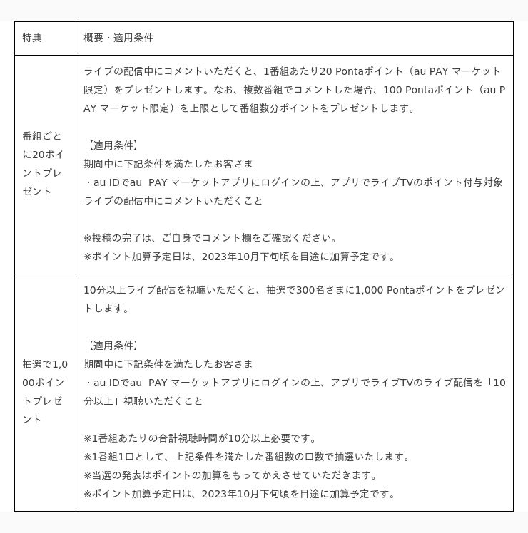2.ライブTVポイントプレゼントキャンペーン特典内容