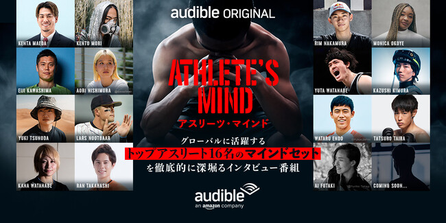 世界最大級のオーディオブックおよび音声コンテンツ制作・配信サービスであるAmazon オーディブル(以下、Audible)は、日本のトップアスリートの内面に迫るポッドキャスト『Athlete's Mind』(アスリーツ・マインド)をAudible独占で10月9日から配信開始しました。『Athlete's Mind』は、世界を股にかけ活躍する16人の日本のトップ・オブ・トップのアスリートがインタビューを通じて、彼、彼女らのキャリアとプロフェッショナリズムについて語りつくします。16人の洗練されたマインドやユニークなストーリーは、リスナーにインスピレーションを与え、モチベーションを高めるものとなっています。