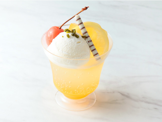 ホワイトチョコの生クリーム、チェリーやピスタチオダイス、レモンのはちみつシロップ漬けなど華やかなトッピングを施し、純喫茶で飲むレモンソーダのようなレトロかわいいルックスに。